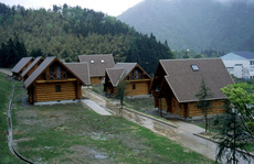 湯村から車で約10分のところにあります。森の国カナダの木材を使用した本格的なログハウスです。