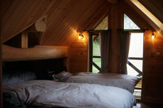 ゆったりとした空間、木のぬくもり、星空の見える窓すべてがアウトドア感覚です。