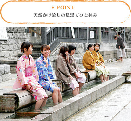 その昔、旅人や農作業の帰りに川に溢れ出た温泉で足をつけて一休みしながらおしゃべりしたそうで、昔を懐かしんで作られたものです。
