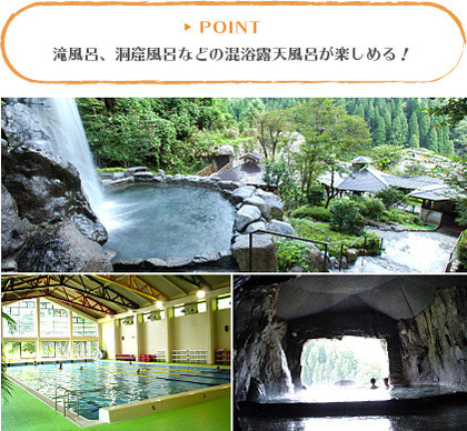 屋内、露天に繰り広げられる様々な浴場に、25メートルの室内温水プール、幼児用プールを完備。 露天風呂尾は水着着用で、混浴が可能。